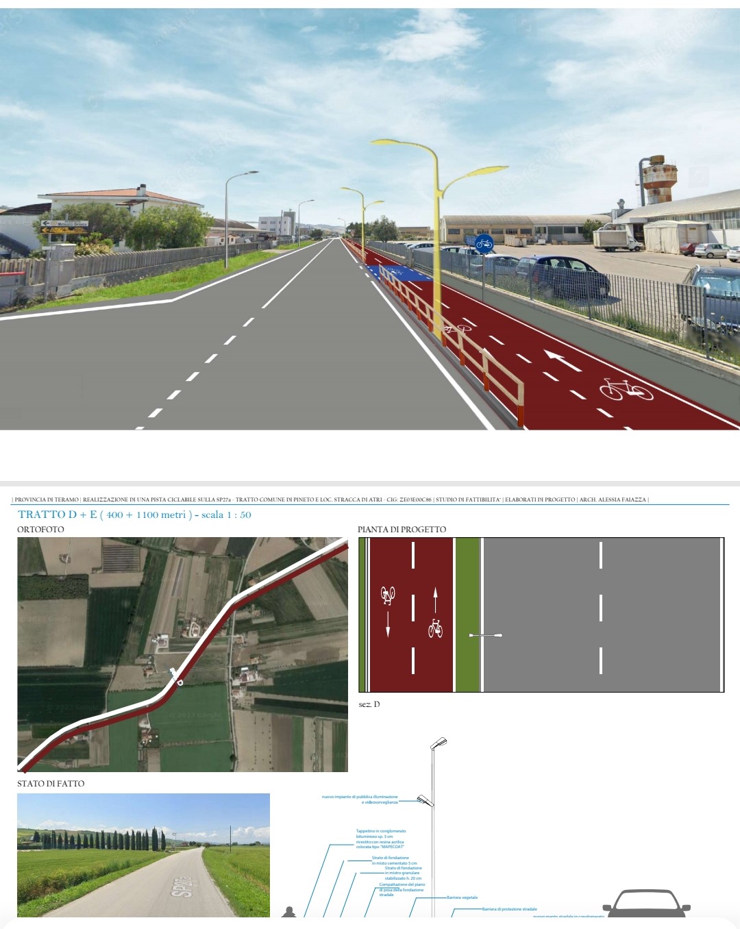 Nello stesso provvedimento sono stati previsti 5 milioni di euro per la sistemazione dellaprovinciale 27/a Atri-Pineto: un collegamento strategico che dall’autostrada a/24 raggiunge la statale 16, collega un'area industriale e poi sale alla città Ducale. Una strada che aspetta da qualche anno un intervento risolutivo rispetto ad una serie di problematiche collegate all’assetto morfologico del territorio e al fatto che si tratta di un crocevia di traffico locale, traffico pesante e snodo verso località turistiche. Con questi fondi, per i quali la Provincia ha acceso un mutuo, si confida in un progetto che riconfiguri l’asse viario provinciale, dalla statale 16 fino all’area industriale, prevedendo, fra le altre cose, uno spazio per la ciclabilità (vedi prospetto grafico allegato).