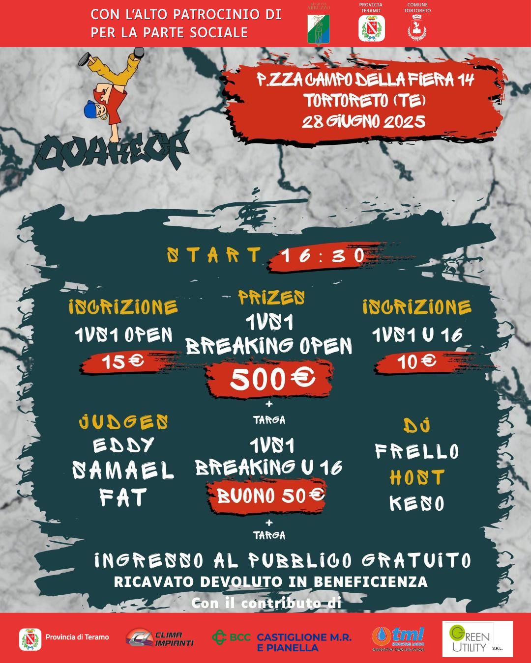 Il 28 giugno dalle 16,30 si svolge la parte dell'evento dedicata alla promozione della cultura giovanile che per quest'anno vede un contest di break dance intitolato “QuakeUP” nel quale le due categorie di partecipanti (Under 16 e Open) si cimenteranno in sfide uno contro uno per sottoporsi al giudizio tecnico di una giuria di rilievo nazionale composta dai breaker Eddy, Samael e Fat. Anche per questa serata ci sarà l'assegnazione di un premio ai migliori delle due categorie di € 50 e targa per la categoria Under16 e di € 500,00 e targa per la categoria Open.