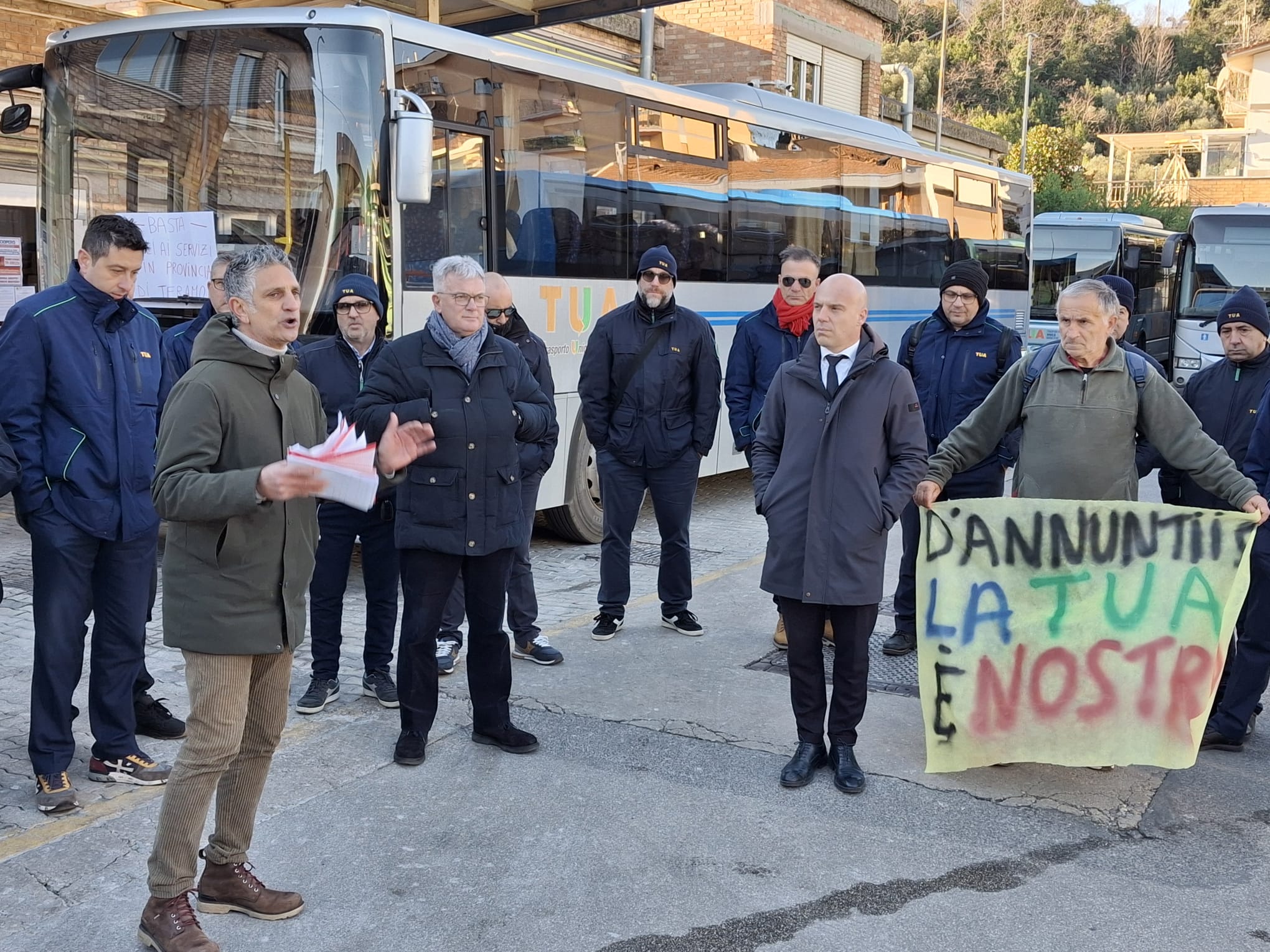 Teramo, 8 gennaio 2026. Questa mattina il presidente Camillo D'Angelo ha incontrato i dipendenti della società pubblica di trasporto abruzzese TUA SpA nella sede di Giulianova, esprimendo piena solidarietà e sostegno alle loro ragioni.